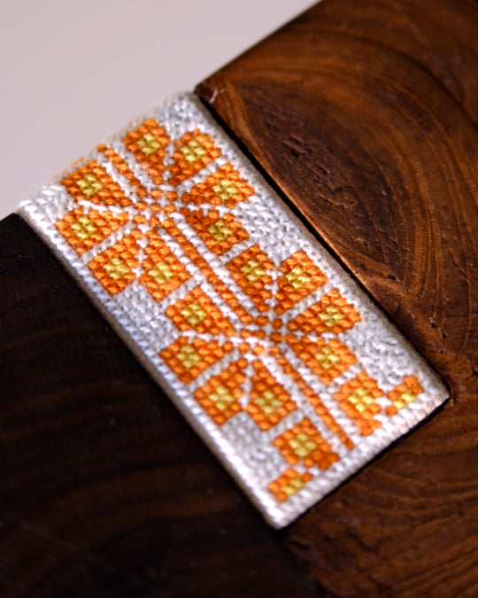 Our DuoEdge Drink Table is now available as a Special Edition, featuring authentic Palestinian embroidery in four distinct motifs and colors. This unique design celebrates cultural heritage while supporting a meaningful cause—a percentage of the proceeds will be donated to Gaza. Crafted as part of the "Duality" collection, this piece combines minimalist design and the striking dual-tone aesthetics of walnut and teak woods, making it an ideal conversation starter for modern homes that value craftsmanship and purpose.